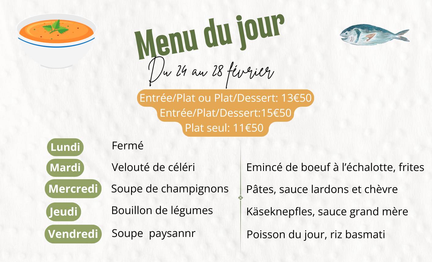 Que ce soit pour un déjeuner, un dîner ou un moment en famille, nous vous invitons à réserver votre table pour profiter pleinement de notre cuisine.